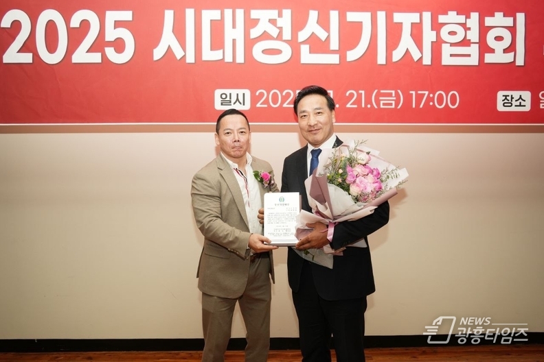 [광흥타임즈 = 조수제 기자] 김용성 경기도의원(더불어민주당, 광명4)은 지난 21일, 광명시 철산동 열린시민청에서 열린 ‘2025 시대정신기자협회 우수의정대상’ 시상식에서 광역의회 부문 우수의정대상을 수상하는 영예를 안았다.