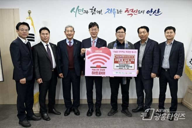 [광흥타임즈 = 조수제 기자] 안산시는 지난 24일 안산상공회의소 CEO 아카데미 총원우회로부터 쌀 250포(포대당 10kg, 1,000만 원)를 기탁받았다고 25일 밝혔다.