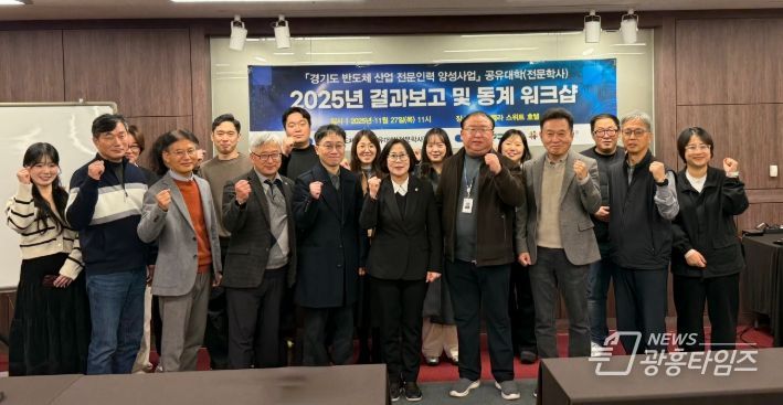 [광흥타임즈 = 조수제 기자] 경기도의회 미래과학협력위원회 서현옥의원(더불어민주당, 평택3)은 27일 벨라스위트 호텔 수원에서 열린 「경기도 반도체 산업 전문인력 양성사업, 공유대학(전문학사) 2025년 결과보고 및 동계워크숍」에서 “반도체 산업 인력 양성의 지원과 의회의 역할”이라는 주제로 특별 강연을 진행하며, 반도체 산업의 지속적 성장을 위한 전문인력 확보의 중요성과 정책적 뒷받침에 대해 강조했다.