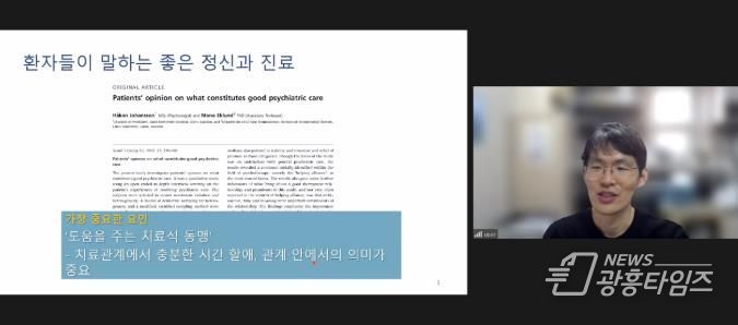 [광흥타임즈 = 조수제 기자] 시흥시정신건강복지센터는 지난 12월 2일 신천연합병원 정신건강의학과 장창현 과장을 초청해 실무자를 대상으로 ‘비판정신의학 살펴보기’ 온라인 교육을 진행했다. 교육에는 정신건강 관련 실무자 40여 명이 참여해 강의와 질의응답이 이어졌다.