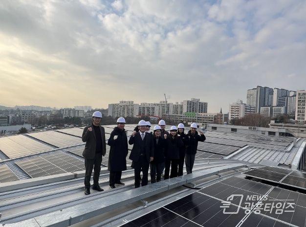 [광흥타임즈 = 조수제 기자] 경기도는 15일 수원월드컵경기장 스포츠센터 옥상에 설치된 태양광발전소를 방문해, 공공시설 유휴부지를 활용한 재생에너지 공급 확대 현황을 점검하고, 공공부문 RE100 달성을 위한 추진 상황을 공유했다. 이번 현장 방문에는 차성수 기후환경에너지국장을 비롯해 경기도수원월드컵경기장관리재단, 경기환경에너지진흥원 관계자들이 함께했다.