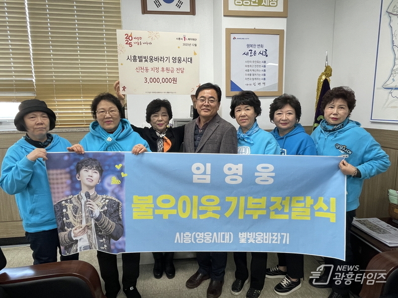 ‘시흥별빛웅바라기 영웅시대’는 지역사회를 위한 나눔과 봉사를 꾸준히 실천해 온 팬클럽으로, 수년간 자발적인 기부 활동을 통해 선한 영향력을 이어오고 있다. 전달된 후원금은 신천동 지역사회보장협의체를 통해 저소득 취약계층의 겨울나기 지원에 쓰인다.