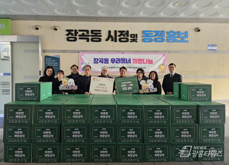 [광흥타임즈 = 조수제 기자] 연말을 맞아 교회를 중심으로 한 나눔의 손길이 계속되는 가운데 지난 12월 17일 신현교회에서 취약계층의 따뜻한 겨울나기를 돕기 위해 장곡동 행정복지센터에 ‘따뜻한 희망상자’ 100개를 전달했다.