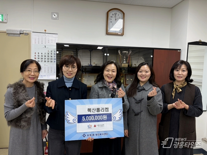 [광흥타임즈 = 조수제 기자] 안양시 호계3동은 지난 17일 렉산폴리켐으로부터 호계3동 저소득 한부모가족 아동을 위한 지정기탁 기부금 500만 원을 전달받았다고 18일 밝혔다.