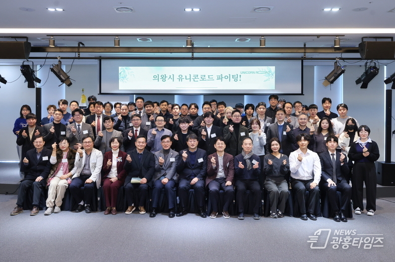 [광흥타임즈 = 구민지 기자] 의왕시가 12월 18일, 한 해 동안 추진해 온 창업기업 성장지원 활동과 성과를 공유하는 ‘2025년 유니콘로드 성과공유 네트워킹’행사를 유니콘로드 입주기업 대표 및 임직원, 유관기관 관계자 100여명이 참석한 가운데 성황리에 마쳤다.
