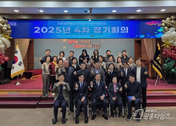 [광흥타임즈 = 구민지 기자] 민주평화통일자문회의 의왕시협의회가 12월 19일 시청 대회의실에서 자문위원 등 45명이 참석한 가운데‘화해·협력의 남북관계 재정립을 위한 정책방향’을 주제로‘2025년 4차 정기회의’를 개최했다.