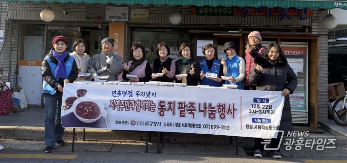 [광흥타임즈 = 조수제 기자] 광명시 소하2동 지역사회보장협의체는 지난 22일 동지를 맞아 금강정사(대한불교조계종)와 사회적협동조합 행원과 함께 마을공유냉장고 ‘소이곳간’에서 ‘동지팥죽 나눔행사’를 진행했다.