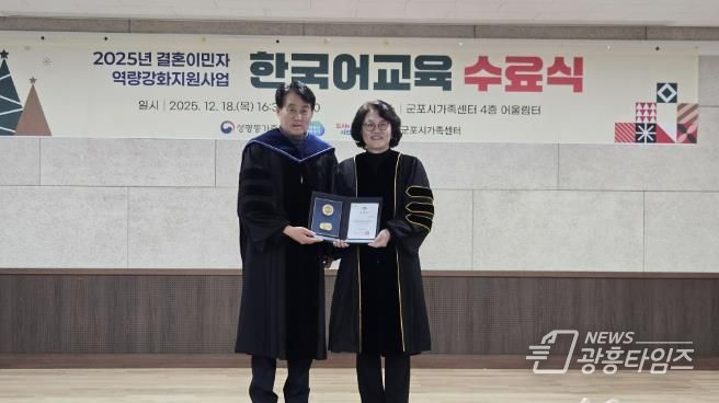 이번 한국어교육 수료식은 지난 1년간 운영된 한국어교육 과정을 마무리하며 학습 성과를 공유하는 뜻깊은 자리로, 이주배경 군포시민이 지역사회에 안정적으로 정착하고 원활하게 소통할 수 있도록 돕기 위해 마련됐다.