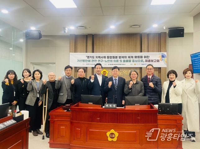 [광흥타임즈 = 조수제 기자] 경기도의회 보건복지위원회 연구단체인 보건복지연구회(회장 이선구 위원장, 더불어민주당, 부천2)는 12월 22일, '경기도 지역사회 통합돌봄 체계 확립을 위한 개선방안에 관한 연구'를 주제로 연구용역 최종보고회를 개최했다.