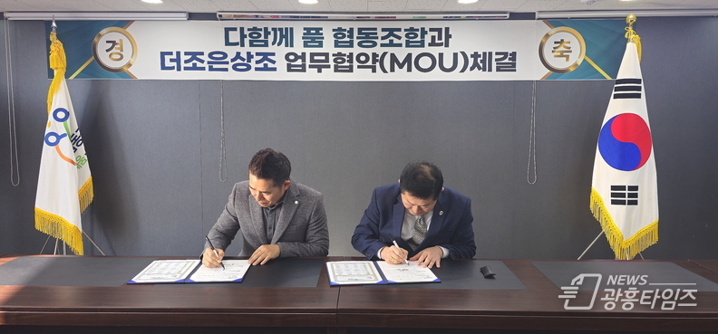 [광흥타임즈 = 조수제 기자]다함께품 협동조합이 회원 복지 향상을 위해 후불제 상조회사와 손을 잡았다. 협동조합은 지난 5월 13일, 후불제 장례 서비스 전문업체 더조은상조와 업무협약(MOU)을 체결하고 조합원 및 회원사를 대상으로 맞춤형 장례·상조 서비스를 제공한다고 밝혔다.