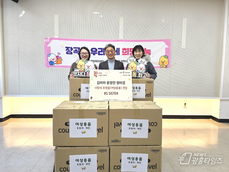 [광흥타임즈 = 조수제 기자] 시흥시 장곡동 행정복지센터는 26일 개인 후원자 김미라, 윤정연, 정미경씨가 관내 취약계층을 위해 260만 원 상당의 여성용품을 후원했다고 전했다.