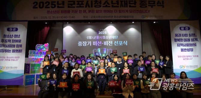 [광흥타임즈 = 조수제 기자] 군포시청소년재단은 2025년 한 해를 마무리하고 새로운 도약을 다짐하기 위해 '2025년 미션·비전 선포식'을 개최했다.