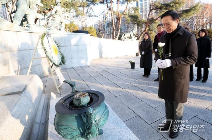 [광흥타임즈 = 조수제 기자] 임태희 경기도교육감이 2일 아침 안양시 현충탑을 찾아 참배하며 2026 병오년(丙午年) 새해 공식 일정을 시작했다.