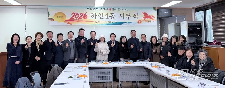한편, 하안4동 행정복지센터는 시무식 종료 후 참석자들과 떡국을 함께 나누며 새해 인사를 전하고 소통과 화합의 의미를 더했다.