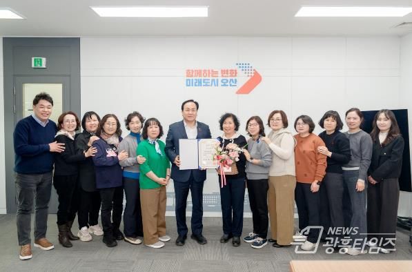 [광흥타임즈 = 조수제 기자] 오산시는 지난 9일, 제15기 국민추천포상에서 국무총리 표창을 수상한 ‘이스트 봉사단’에 상장을 전달하고 봉사자들을 격려했다고 밝혔다. 이스트 봉사단은 앞서 지난 1월 2일 청와대 영빈관에서 열린 시상식에서 국무총리 표창을 수상한 바 있다.