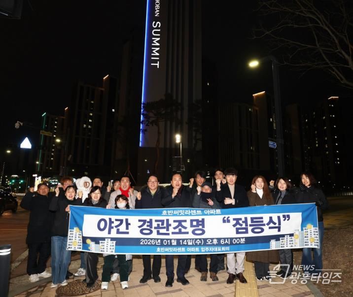 이번 점등식은 기존 옥탑부 조명을 보완해 새롭게 설치한 ‘라인 경관조명’의 본격적인 가동을 알리는 행사로, 아파트 외벽을 따라 조성된 경관조명이 점등되며 단지 전반의 야간 경관이 한층 밝고 쾌적하게 개선됐다.