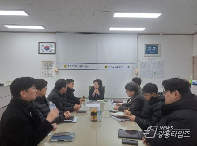 [광흥타임즈 = 조수제 기자] 경기도의회 도시환경위원회 김옥순 의원(더불어민주당, 비례)은 1월 16일 경기도의회 의왕상담소에서 의왕시청 도시정책과장과 관계 공무원 및 주민들과 함께 ‘재개발 사업 공사 진행 관련 문제점 대책 마련을 위한 정담회’를 개최했다.