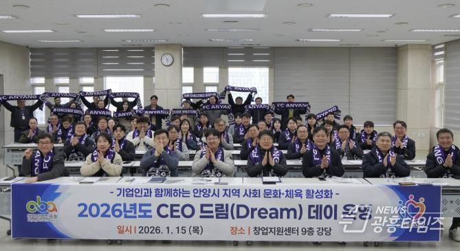 [광흥타임즈 = 조수제 기자] 안양산업진흥원은 15일 오후 3시30분 안양창업지원센터 강당에서 관내 기업인 150여 명을 대상으로 지역사회 문화·체육 활성화를 위한 ‘2026 CEO 드림(Dream) 데이’를 열었다.