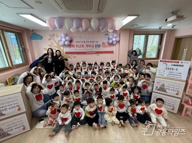 부산동에 위치한 시립자이꿈미어린이집은 매년 성금과 생필품을 기부하며 지역사회 나눔 문화 확산에 앞장서고 있다. 이번 후원은 어린이집에서 진행한 ‘라면트리 만들기’ 행사를 통해 마련된 라면과, 학부모 및 교직원들이 자발적으로 참여해 모은 성금으로 준비됐다.