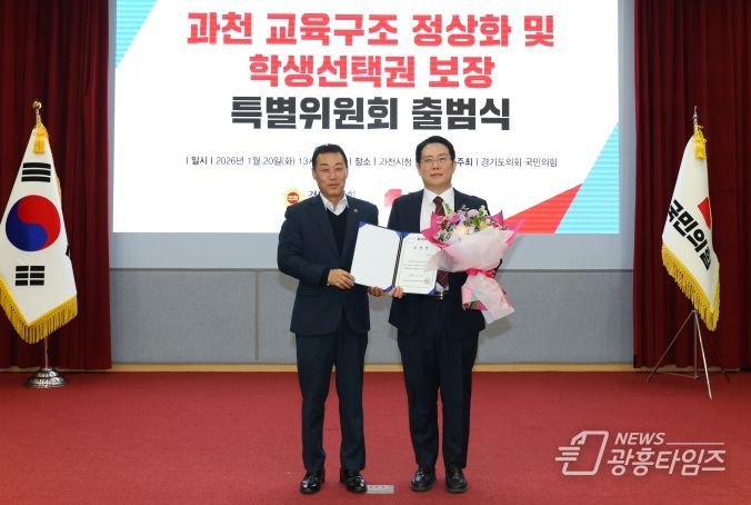 [광흥타임즈 = 조수제 기자] 경기도의회 국민의힘은 20일 ‘과천 교육구조 정상화 및 학생선택권 보장 특별위원회’를 출범하고 특별위원장에 김현석(과천) 의원을 임명했다.