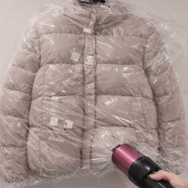 소주물을 뿌린 다음엔 패딩 전체에 비닐을 씌우고, 드라이기 바람을 넣어주는 과정을 거친다. 이때 사용하는 비닐은 세탁소용 비닐이나 일반 투명 포장용 비닐로 충분하다. 비닐 안에 따뜻한 바람이 순환되며 자연스럽게 수분과 냄새 성분이 함께 날아간다.