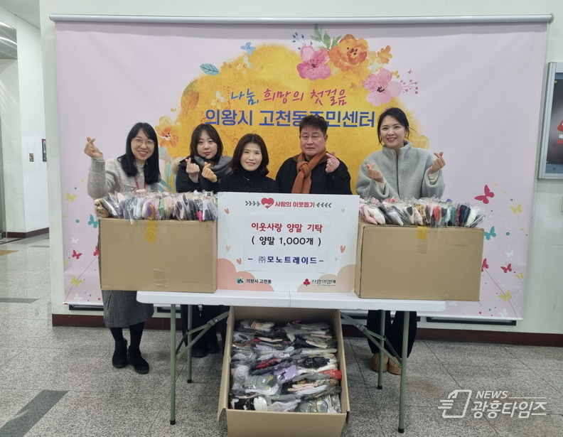 [광흥타임즈 = 구민지 기자] 의왕시 고천동주민센터가 1월 29일, 지역 내 취약계층을 돕기 위한 이웃돕기 물품으로 양말 1,000켤레를 기탁받았다.
