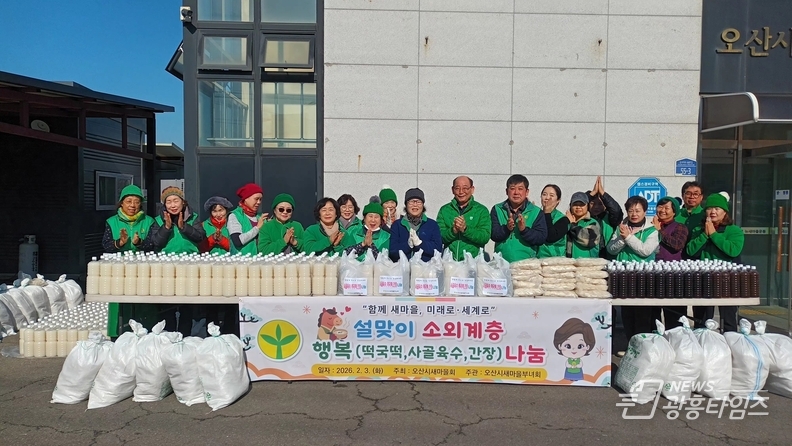 이광수 오산시 새마을회장과 홍영숙 오산시 새마을부녀회장은 “설 명절을 맞아 어려운 이웃들이 따뜻한 마음으로 명절을 보내길 바라는 마음으로 행사를 준비했다”며 “앞으로도 지역사회에 도움이 되는 나눔 활동을 지속적으로 이어가겠다”고 말했다.