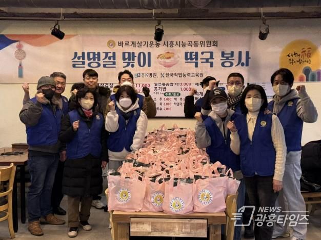 [광흥타임즈 = 조수제 기자] 시흥시 능곡동 바르게살기위원회는 능곡동 행정복지센터와 함께 지난 2월 7일 ‘설 명절 맞이 떡국 나눔’ 봉사활동을 진행했다.