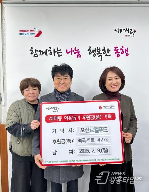 [광흥타임즈 = 조수제 기자] 오산시 세마동 행정복지센터는 지난 9일 오산로컬푸드로부터 관내 복지사각지대 가정을 지원하기 위한 떡국 세트 42개(약 100만 원 상당)를 기탁받았다고 밝혔다.