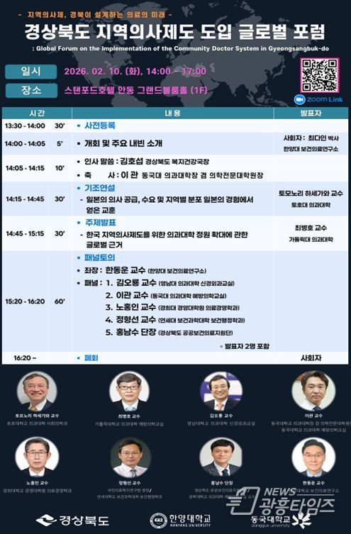 [광흥타임즈 = 조수제 기자] 경상북도는 2월 10일 안동 스탠포드호텔에서 ‘지역의사제, 경북이 설계하는 의료의 미래’를 주제로 글로벌 포럼을 개최했다.