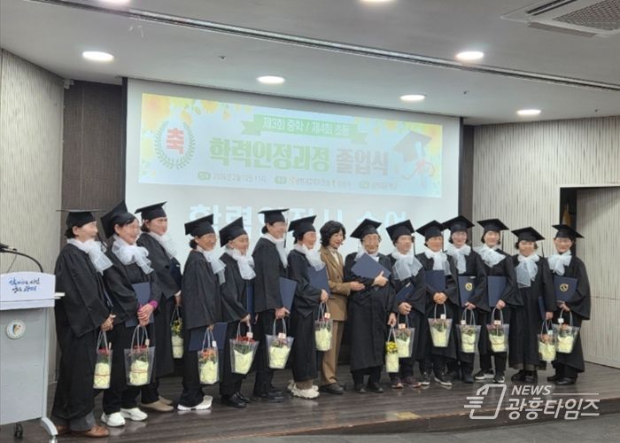 [광흥타임즈 = 조수제 기자] 경기도광명교육지원청은 10일 광명시평생학습원에서 ‘광명좋은학교’ 문해교육 프로그램 이수자 25명(초등과정 10명, 중학과정 15명)에게 학력인정서를 수여했다.