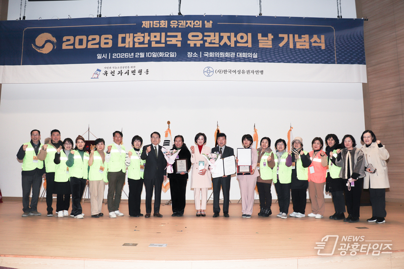 유권자시민행동과 한국여성유권자연맹은 2월 10일 국회 대회의실에서 ‘2026 대한민국 유권자의 날’ 기념식 및 시상식을 개최하고, 직능인·경제인·자영업·소상공인을 위해 헌신적으로 활동해 온 선출직 공직자와 사회공헌 인사들을 대상으로 시상을 진행했다.