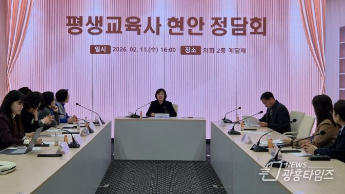 [광흥타임즈 = 조수제 기자] 경기도의회 교육기획위원회 김영희 의원(더불어민주당, 오산1)은 지난 11일 경기도의회 예담채에서 (사)한국평생교육사협회 관계자들과 정담회를 갖고, 평생교육사의 전문성 강화를 위한 보수교육 제도 개선 필요성에 대해 논의했다.