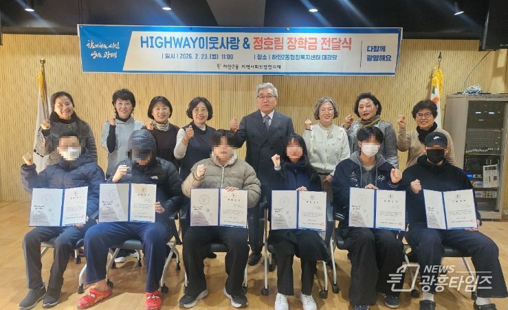 [광흥타임즈 = 조수제 기자] 광명시 하안2동 지역사회보장협의체는 23일 하안2동 행정복지센터 대강당에서 ‘2026년 하이웨이(HIGHWAY) 이웃사랑&정호림 장학생’으로 선발된 대학생 6명에게 총 600만 원의 장학금을 전달했다.