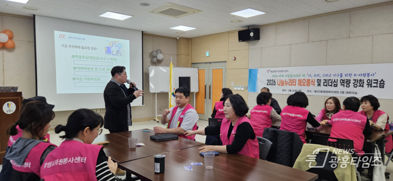 [광흥타임즈 = 조수제 기자] 재)광명시자원봉사센터(이사장 박승원)는 지난 26일 센터 거점인 나눔누리터의 ‘해오름식 및 성장 강화 워크숍’을 개최하고, 연간 운영 방향을 공유하며 회원 간 공감대를 형성하는 뜻깊은 시간을 가졌다.