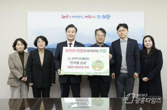 [광흥타임즈 = 구민지 기자] 한국전력공사 전력기자재센터가 3월 3일, 의왕시 저소득층을 위해 온누리상품권 300만원을 기부했다.