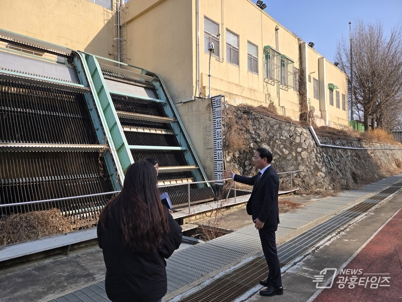 [광흥타임즈 = 조수제 기자] 광명시의회 안성환 의원은 4일 광명시 철산동 사성공원 인근에 위치한 철산배수펌프장을 방문해 시민 안전을 위협하는 시설물에 대한 민원 현장을 직접 점검했다.