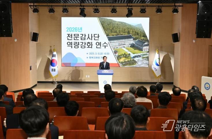 [광흥타임즈 = 조수제 기자] 경북교육청은 6일 본청 행복지원동 연화관에서 전문감사단 55명을 대상으로 ‘2026년 전문감사단 역량 강화 연수’를 개최했다고 밝혔다.