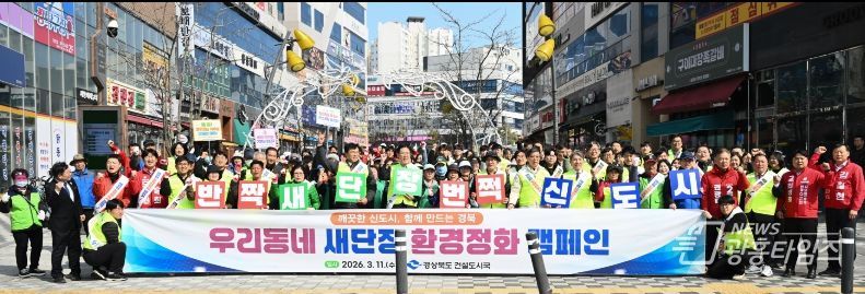 [광흥타임즈 = 조수제 기자] 경상북도는 3월 11일 오후 2시, 경북도청 신도시 일원에서 주민과 관계기관이 함께하는 환경정화 활동 ‘우리동네 새단장’ 캠페인을 개최했다.
