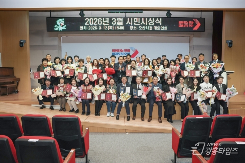 [광흥타임즈 = 조수제 기자] 오산시는 지난 12일 오산시청 대회의실에서 2026년 3월 시민시상식을 개최했다고 밝혔다.