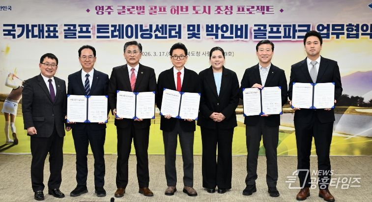 [광흥타임즈 = 조수제 기자] 경상북도는 3월 17일 경북도청에서 ‘영주 국가대표 골프 트레이닝 센터 및 박인비 골프파크 조성사업을 위한 업무협약’을 체결하고 ‘영주 글로벌 골프 허브 도시 조성 프로젝트’를 본격 가동한다.
