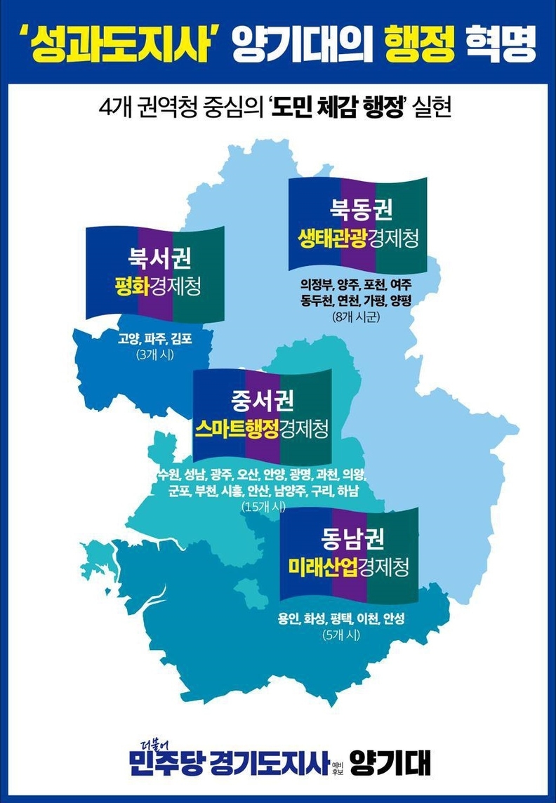 양 예비후보는 먼저 “경기도는 인구 1400만의 ‘국가급 규모’인데, 수원 본청 중심 행정 구조로는 민원도, 투자도, 갈등도 제때 해결할 수 없다”고 진단했다.