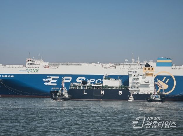 [광흥타임즈 = 조수제 기자] 경기평택항만공사는 18일 평택국제자동차부두에서 개항 이래 최초로 대형 자동차운반선에 1,290톤(Metric Ton) 규모의 친환경 액화천연가스(LNG)를 성공적으로 급유했다고 밝혔다. 이번 첫 시범 운영 성공으로 평택항은 본격적인 상업용 친환경 선박 연료 공급(벙커링) 기반을 마련하며 국제 항만 경쟁력을 한층 끌어올렸다.