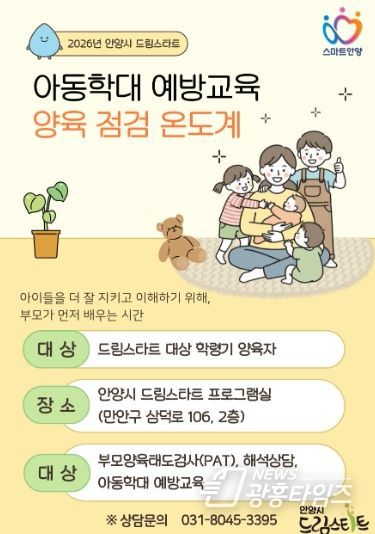 [광흥타임즈 = 조수제 기자] 안양시가 아동 학대를 사전에 차단하고 건강한 양육 환경을 조성하기 위해 맞춤형 부모 교육 프로그램인 ‘2026 드림스타트 양육 점검 온도계’를 본격 가동한다고 18일 밝혔다.