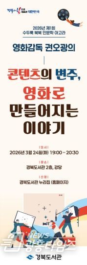 [광흥타임즈 = 조수제 기자] 경북도서관은 3월 24일 저녁 7시, 도서관 2층 강당에서 영화감독 권오광을 초청해 ‘2026년 수두룩 북북 인문학 아고라’ 첫 번째 강연을 개최한다.