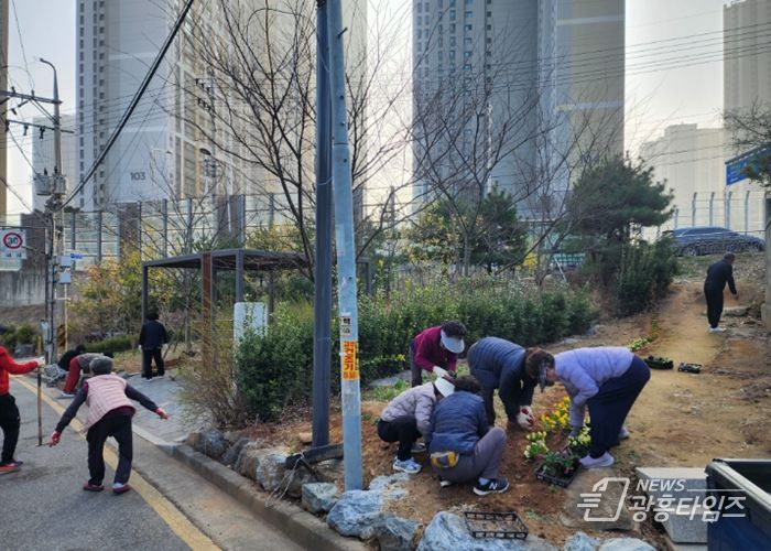 [광흥타임즈 = 조수제 기자] 광명시 일직동 행정복지센터는 지난 28일 본격적인 봄철을 맞아 쾌적하고 아름다운 마을 환경을 조성하기 위해 호봉골 소공원 일대에서 ‘2026년 시민참여 꽃 심기’ 행사를 실시했다.