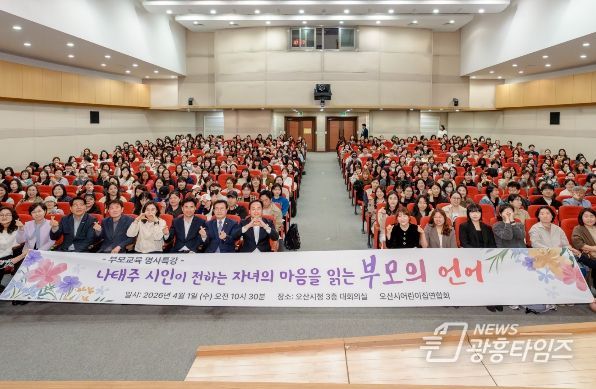 [광흥타임즈 = 조수제 기자] 오산시는 오산시어린이집연합회가 지난 1일 관내 어린이집 학부모를 대상으로 시인 나태주를 초청해 ‘자녀의 마음을 읽는 부모의 언어’를 주제로 부모교육 명사특강을 개최했다고 밝혔다.