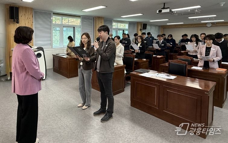 [광흥타임즈 = 조수제 기자] 경상북도청송교육지원청은 2일, 3층 대회의실에서 전 직원이 참여한 가운데 ‘청렴 및 적극행정 실천 서약식’을 개최했다.