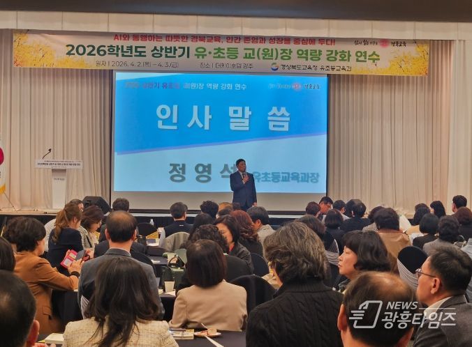 [광흥타임즈 = 조수제 기자] 경북교육청은 2일부터 3일까지 이틀간 경주시에 있는 더케이호텔경주에서 도내 유․초․특수학교 교(원)장 467명을 대상으로 ‘2026학년도 상반기 교(원)장 역량 강화 연수’를 개최했다고 밝혔다.