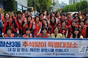 [광흥타임즈 = 조수제 기자] 광명시 철산3동 행정복지센터는 지난 24일 추석을 앞두고 ‘대한민국 새단장 캠페인’의 일환으로 대청소를 실시했다. 이번 대청소에는 철산3동 통장협의회를 비롯한 유관단체 회원 100여 명이 참여해, 유동인구가 많은 철산상업지구 일대에서 무단투기 쓰레기를 집중 수거하고 불법 광고물을 제거하는 등 쾌적한 명절 분위기를 조성하며 주민들의 자발적인 환경정비 참여를 독려했다. 이선미 통장협의회장은 “우리 마을을 스스로 가꾸는 일에 함께하게 돼 뜻깊다”며 “깨끗해진 동네 모습을 보니 뿌듯하고, 앞으로도 살기 좋은 철산3동을 만드는 데 통장협의회가 앞장서겠다”고 말했다. 권위향 동장은 “주민들이 쾌적한 환경에서 가족과 함께 따뜻한 명절을 보낼 수 있도록 이번 대청소를 준비했다”며 “앞으로도 주민들과 함께 깨끗한 철산3동을 만들어가겠다”고 전했다. 한편, 철산3동은 앞으로도 정기적인 환경정비 활동과 주민 참여 캠페인을 이어가며 생활환경 개선과 공동체 의식 함양에 힘쓸 계획이다.